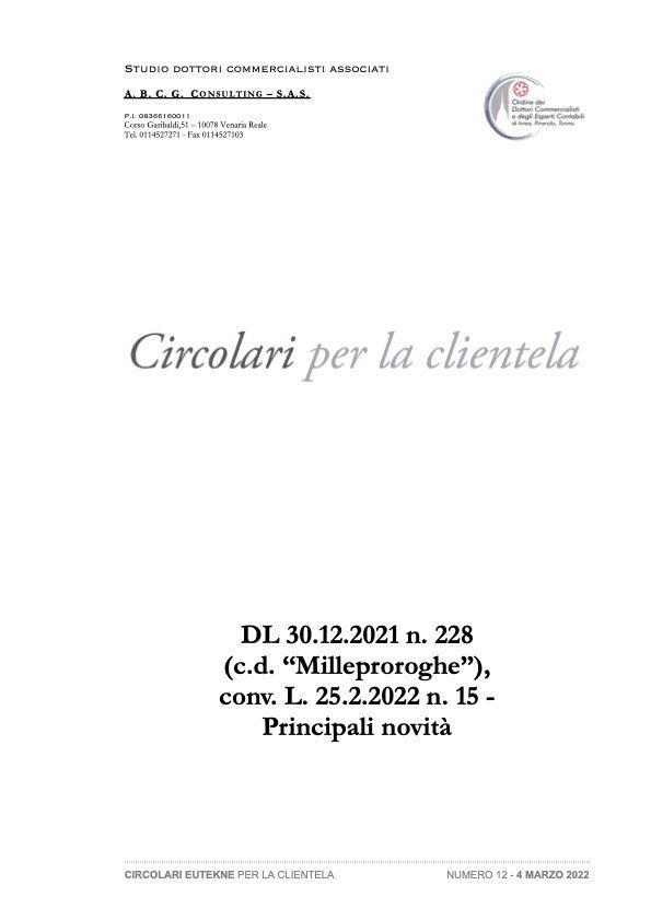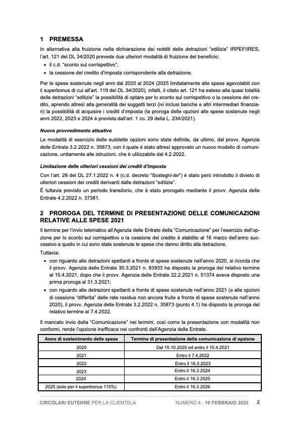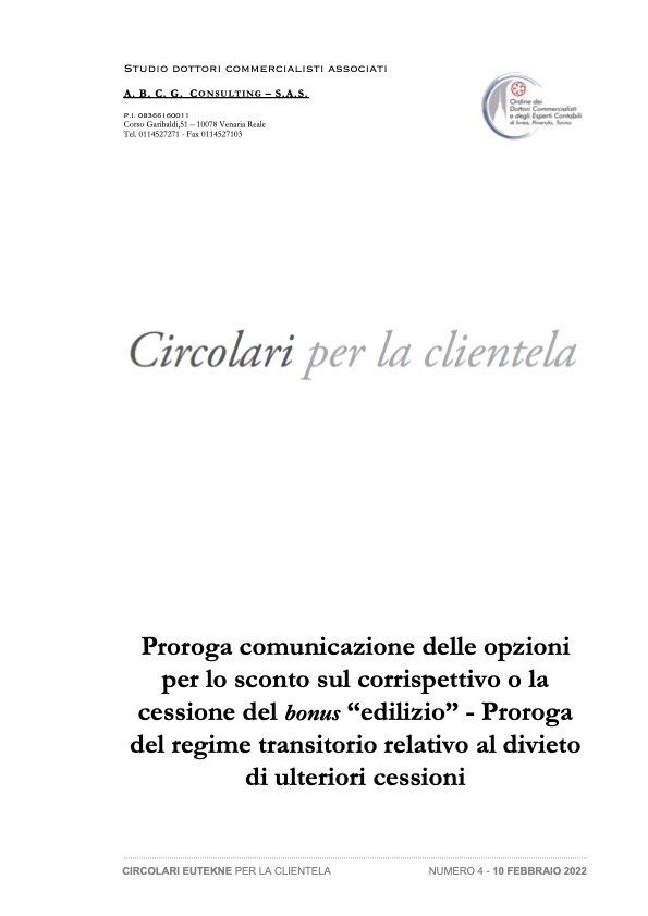 Proroga comunicazione delle opzioni per lo sconto sul corrispettivo o la cessione delbonus“edilizio” - Proroga del regime transitorio relativo al divieto di ulteriori cessioni.