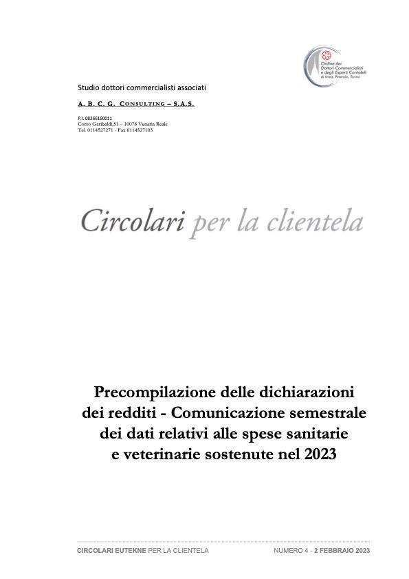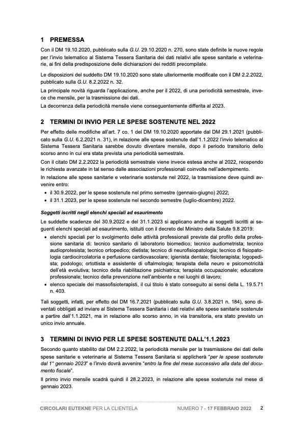 Precompilazione delle dichiarazioni dei redditi - Comunicazione dei dati relativi alle spese sanitarie e veterinarie sostenute dal 2022 - Nuove scadenze