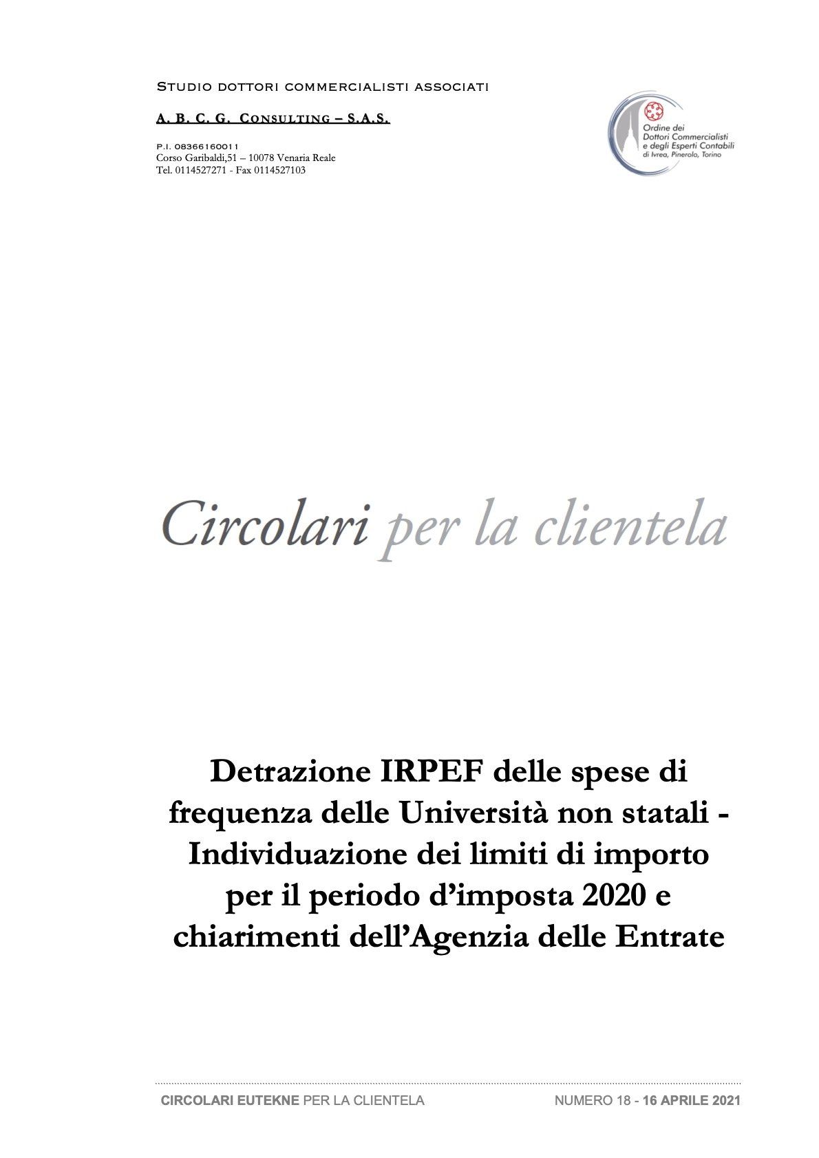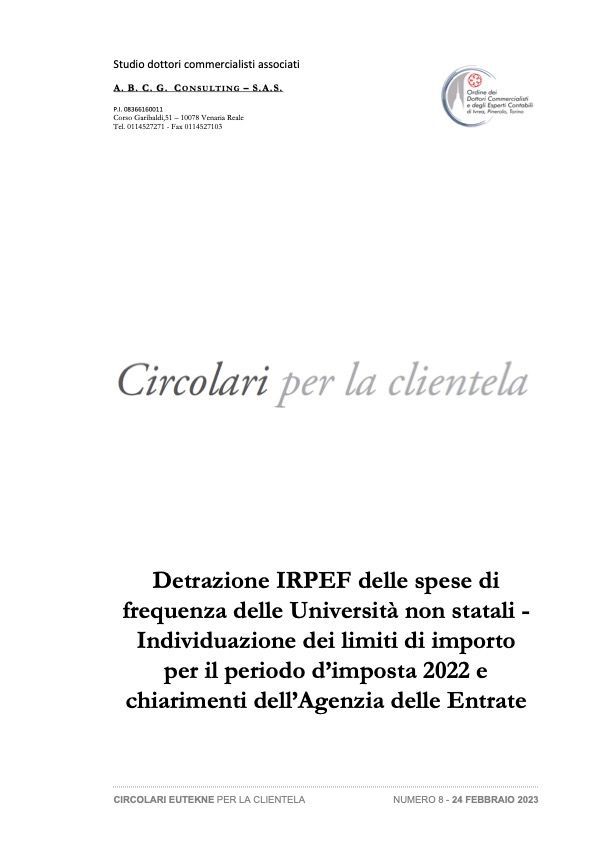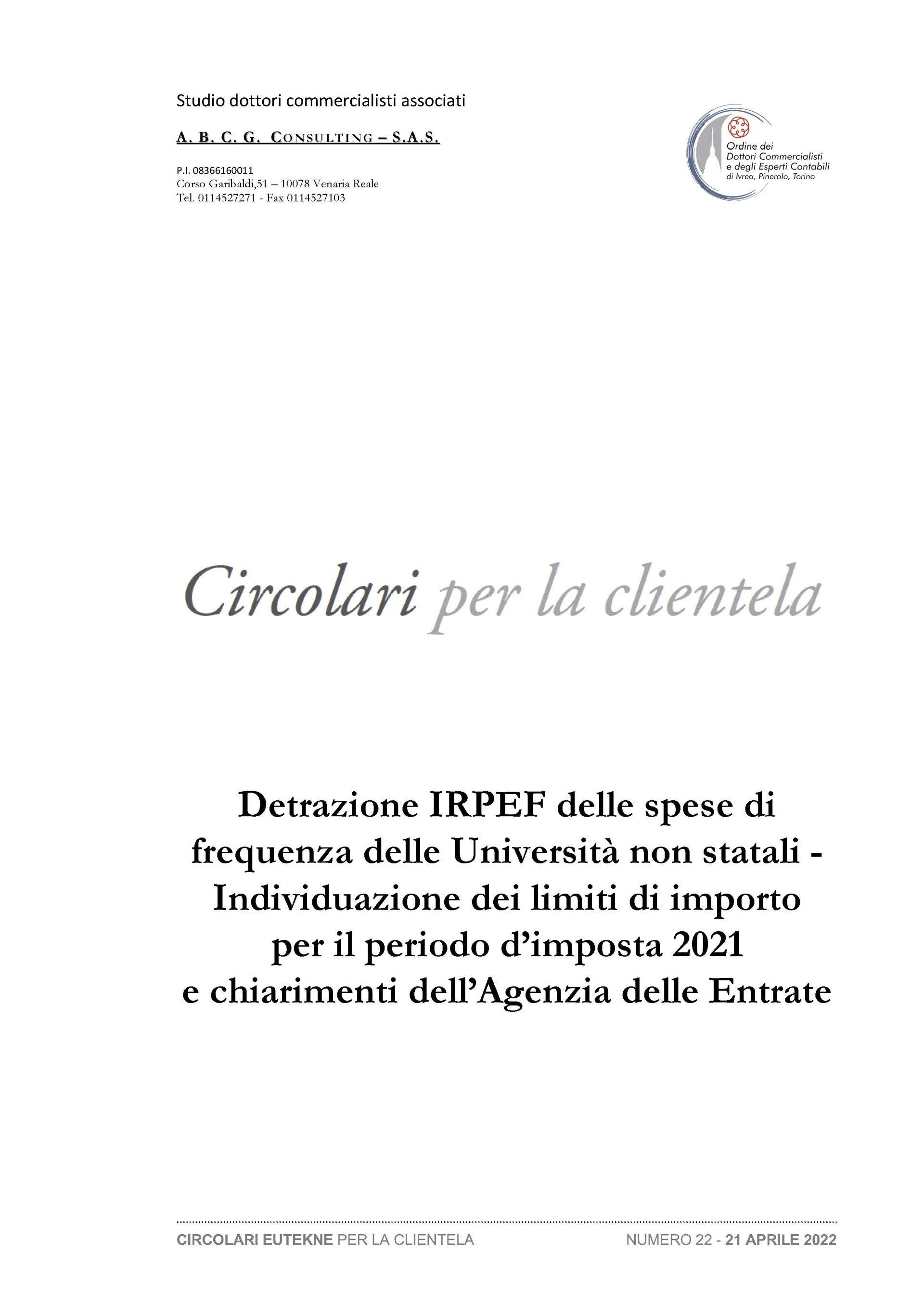 Detrazione IRPEF delle spese di frequenza delle Università non statali - Individuazione dei limiti di importo per il periodo d’imposta 2021 e chiarimenti dell’Agenzia delle Entrate