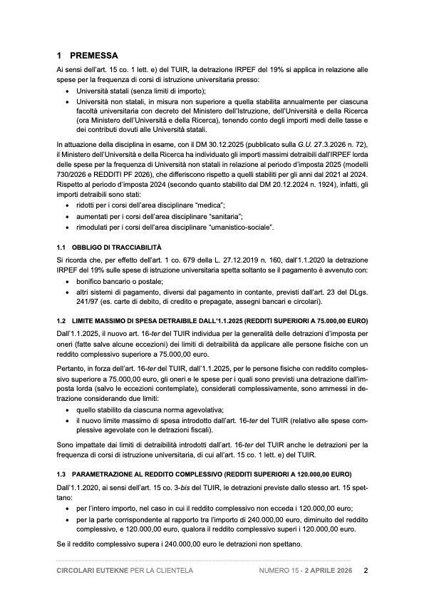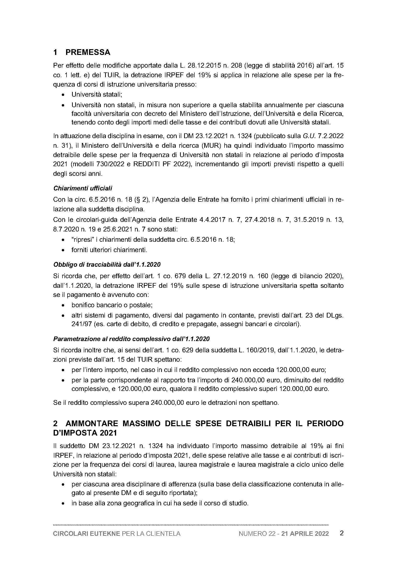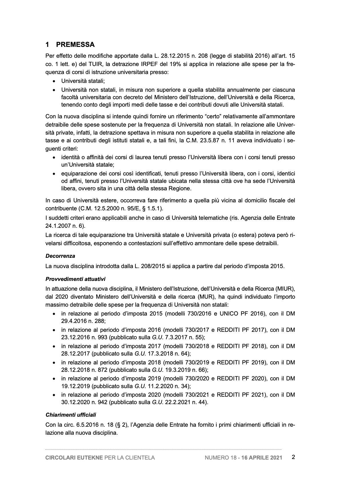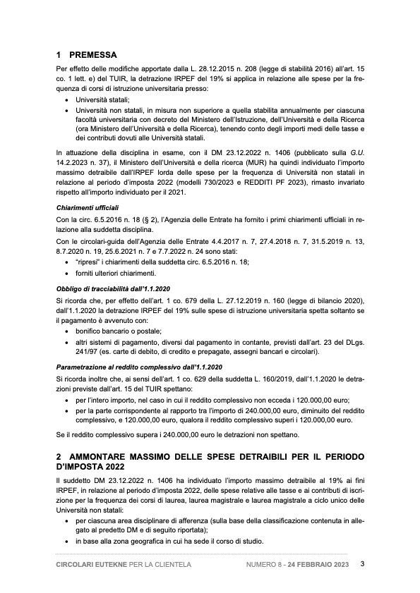 Detrazione IRPEF delle spese di frequenza delle Università non statali - Individuazione dei limiti di importo per il periodo d’imposta 2021 e chiarimenti dell’Agenzia delle Entrate
