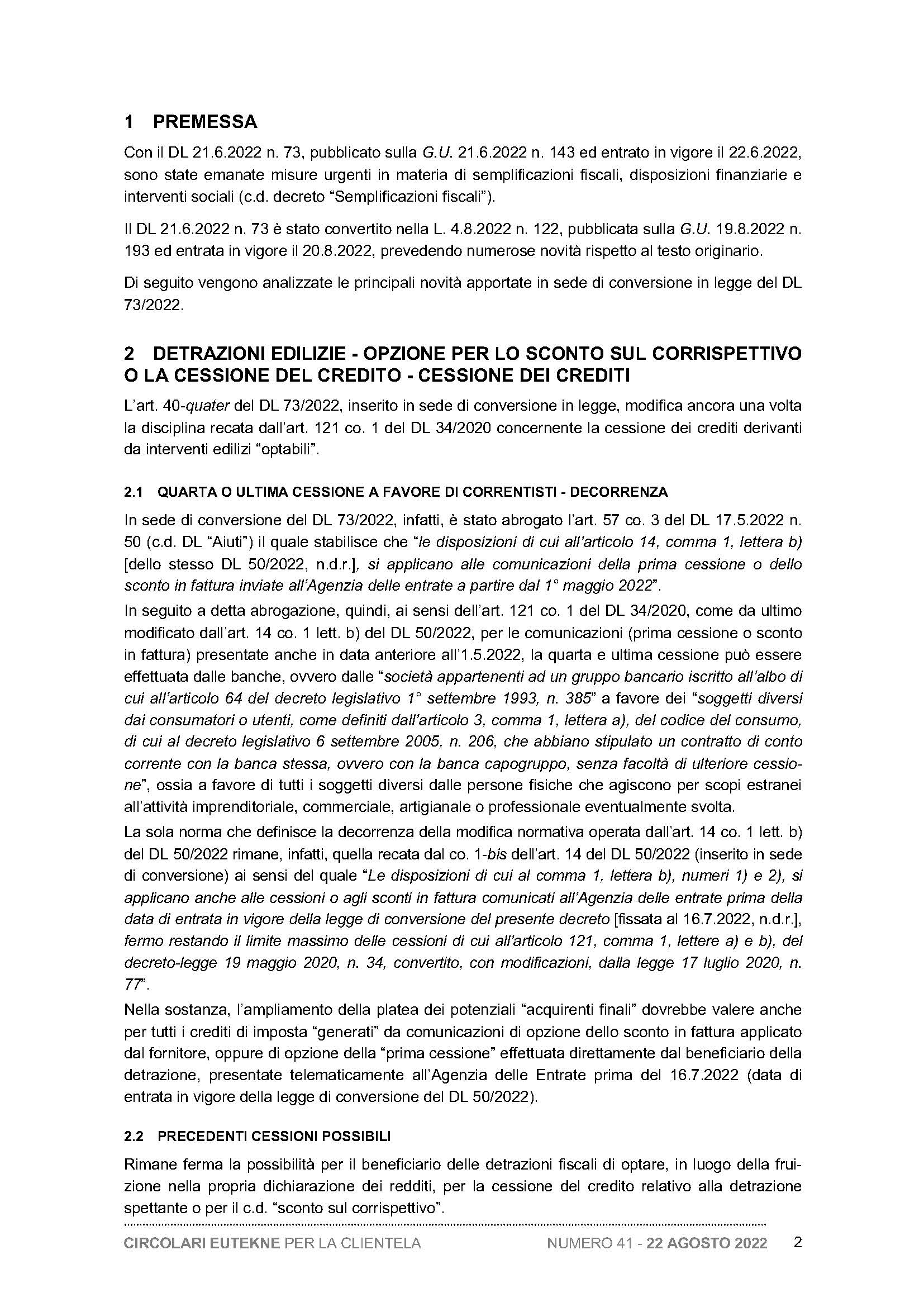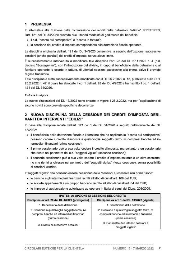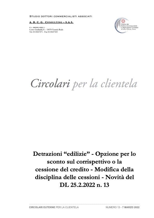 Detrazioni “edilizie” - Opzione per lo sconto sul corrispettivo o la cessione del credito - Modifica della disciplina delle cessioni - Novità del DL 25.2.2022 n. 13